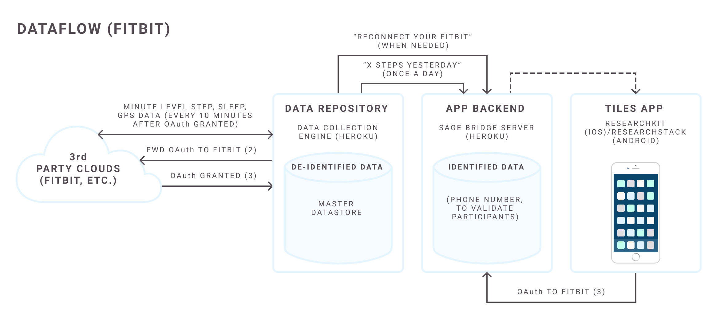 - Displaying information gathered by the app backend from 3rd party servers (e.g., Fitbit)